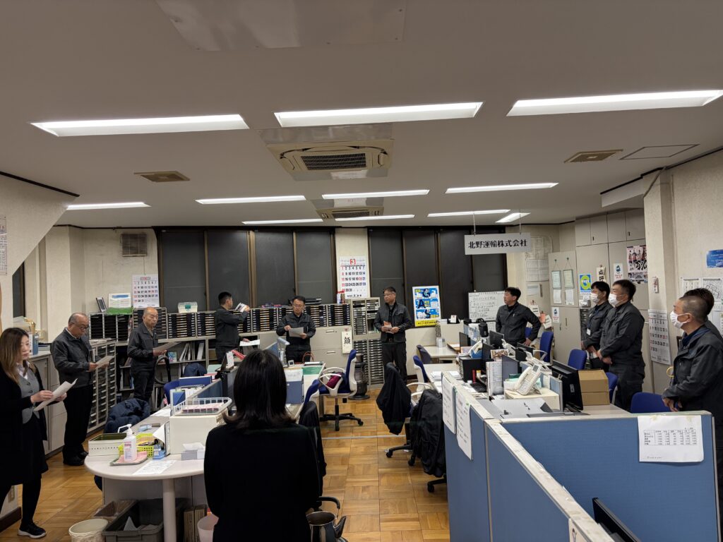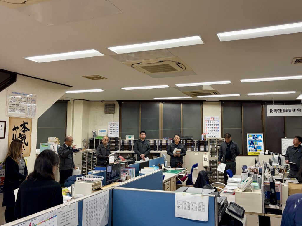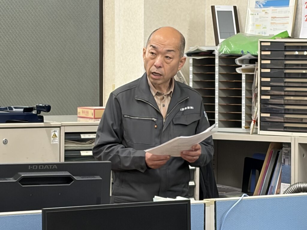 北野産業では、今般の原油価格急騰を受け、朝礼にて最新の情勢とお客様へのご説明内容について社内共有を行いました。